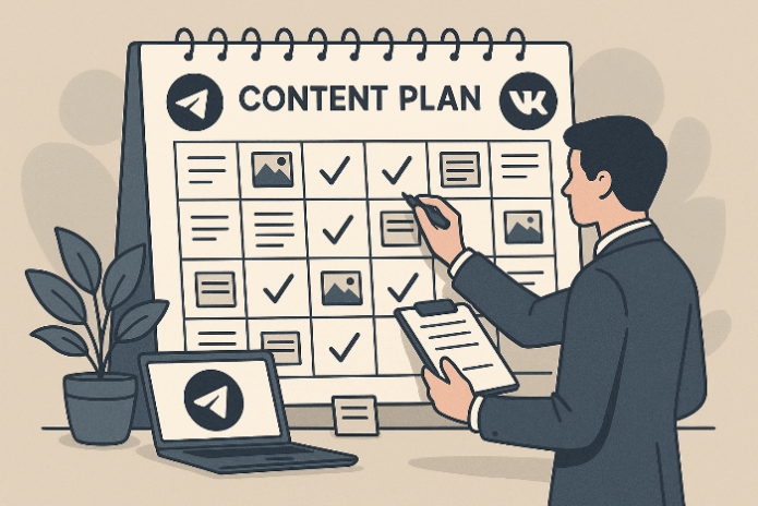 Контент‑план — основа любой коммуникационной стратегии. Для Telegram‑канала он включает разработку уникального контента, который соответствует тематике канала и удерживает внимание подписчиков. Для группы ВКонтакте — составление плана постов, учитывающего интересы аудитории и регулярность публикаций.