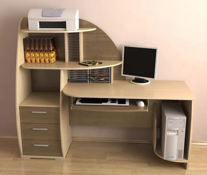 Існує кілька основних типів комп’ютерних столів, що відрізняються формою та призначенням: